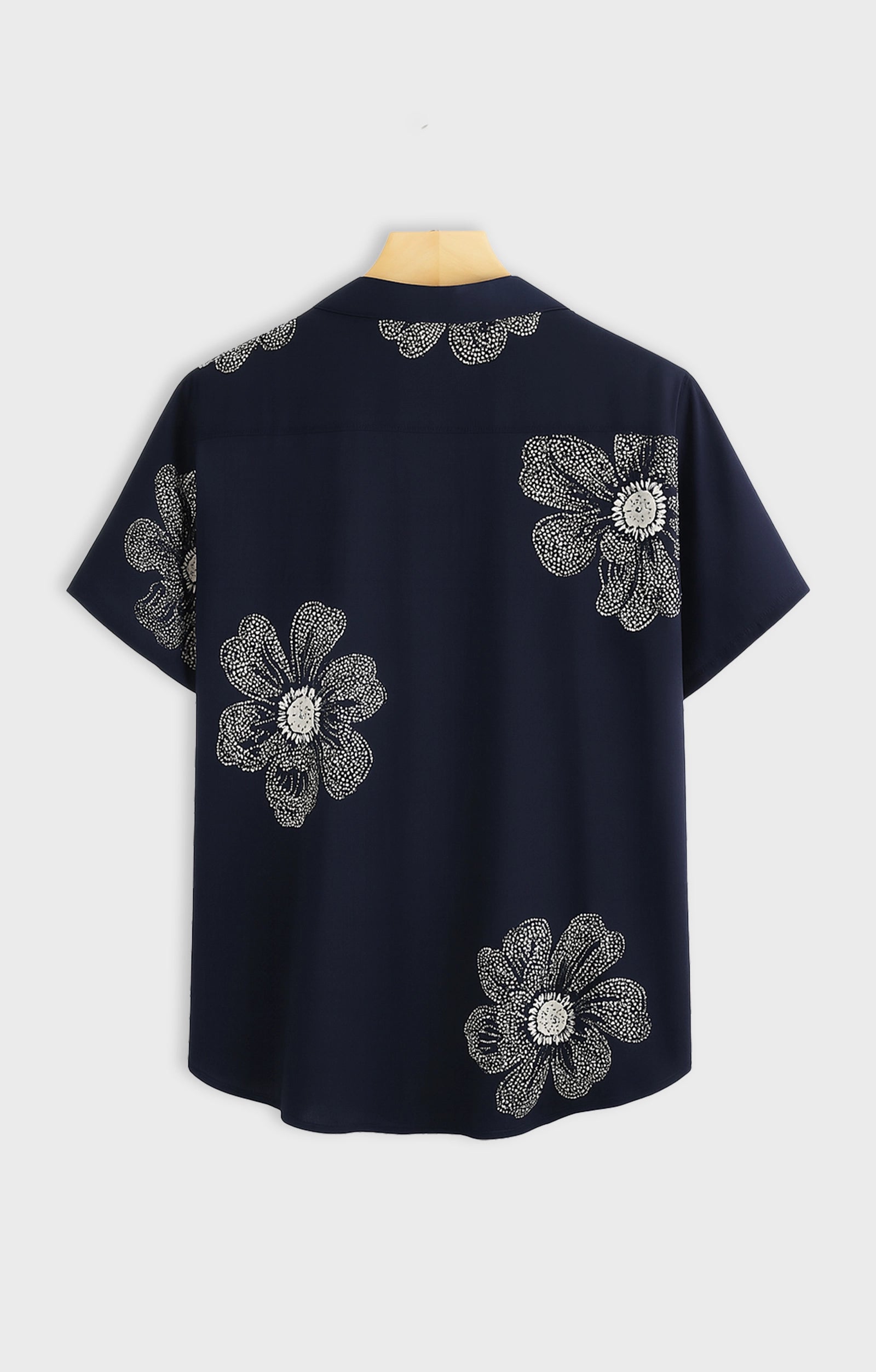 NAVY_FLOWER Casual short-sleeve button-up shirt