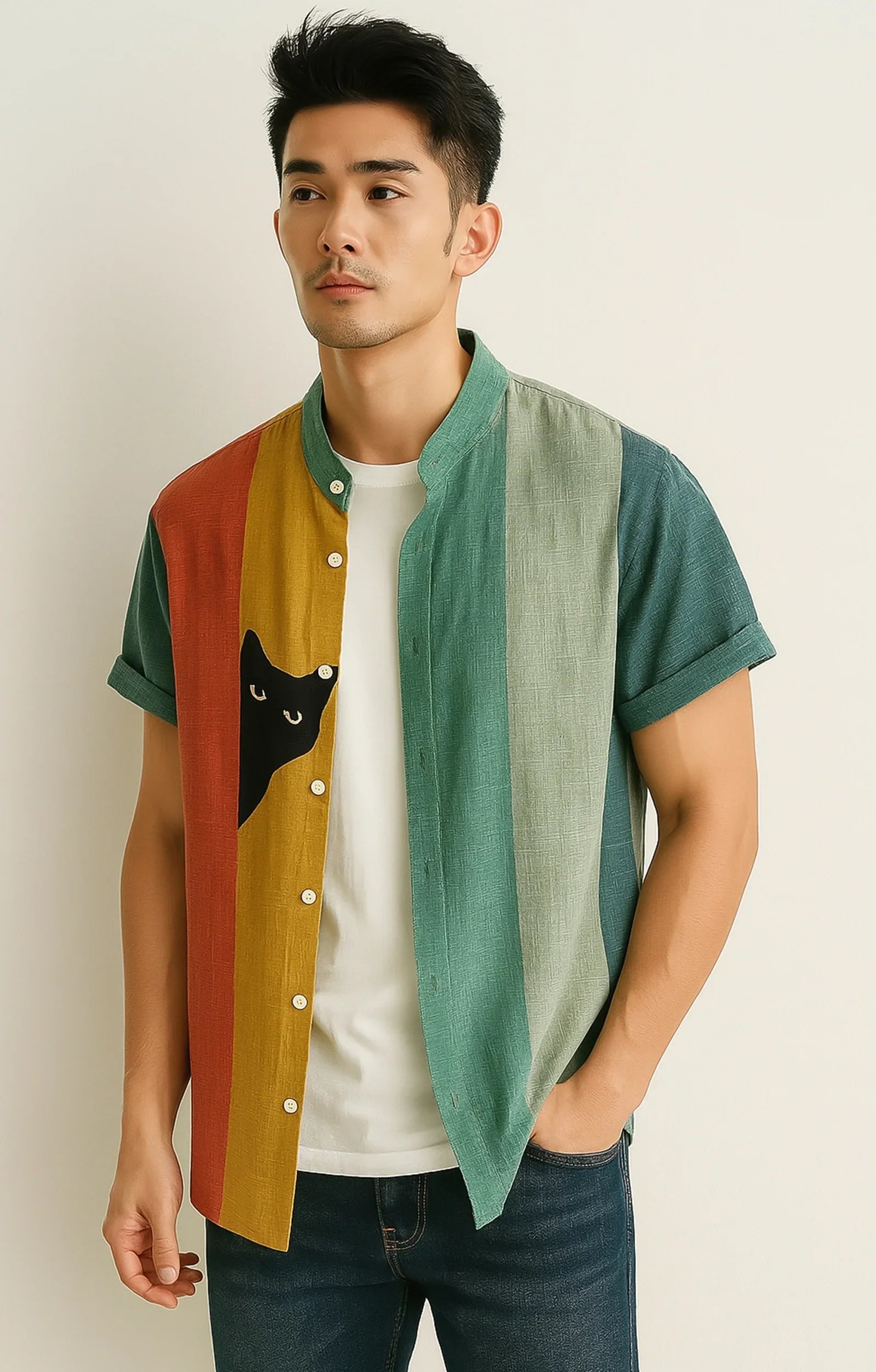 Multicolor Cat Printed Mens Half Sleeves Shirt - XPST